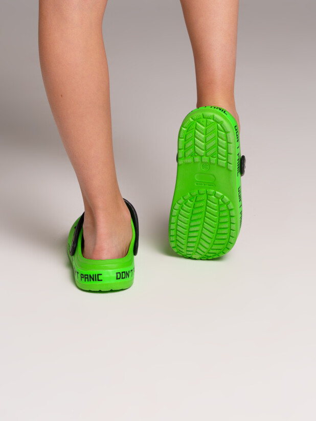 Шлепанцы из облегченного и прочного ЭВА. Материал хорошо моется. Форма модели учитывает эргономику стопы. Модель имеет перекидной ремешок для надежной фиксации стопы.