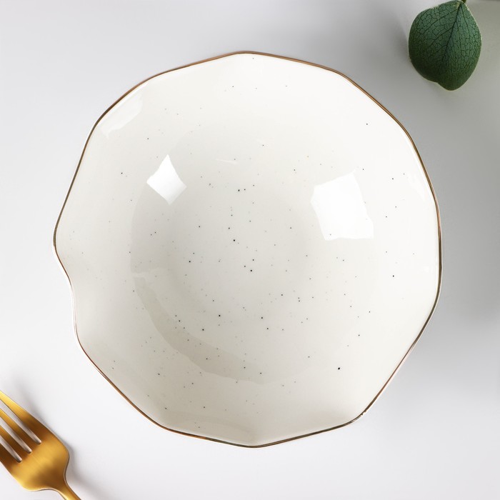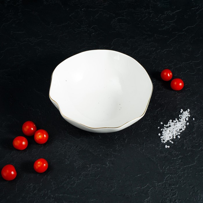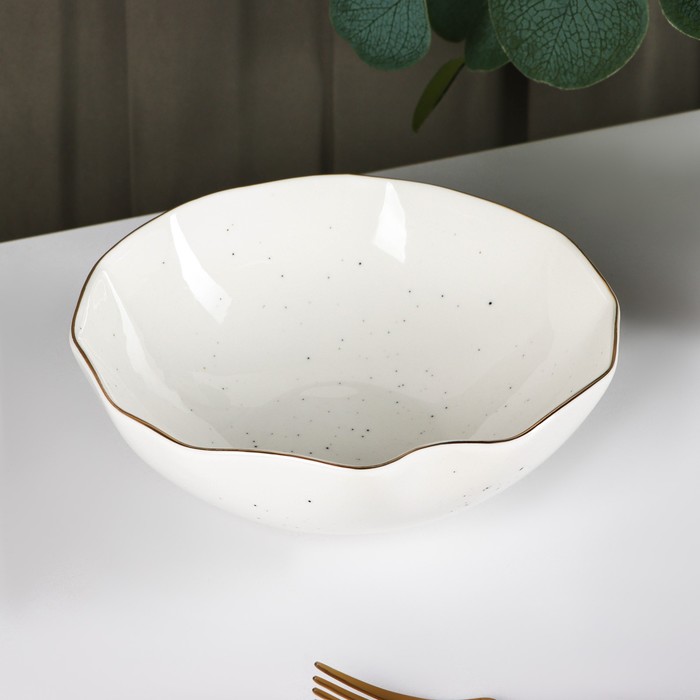 Производитель: Доляна; Габариты: 18 x 18 x 7; Страна: Китай; В боксе: 48 шт; Состав: Фарфор; Материалы: фарфор; Фасовка: по 1 шт; Индивидуальная упаковка: Цветная картонная коробка; Габариты товара: 17,5 см × 17,5 см × 6,5 см; Сертификат: СТР; Набор: Нет; Цвет: Белый; Диаметр, см: 17,5; Объём, л: 0,7; Объём, мл: 700; Тематика: Полоски, полоса, В крапинку; Рисунок: Да; Крышка: Нет; Материал: Фарфор; Для детей до 3 лет: Нет; Можно мыть в посудомоечной машине: Нет; Можно использовать в СВЧ-печи: Нет; Текстура: Гладкая; Особенности: С золотой отводкой; Для горячего: Да