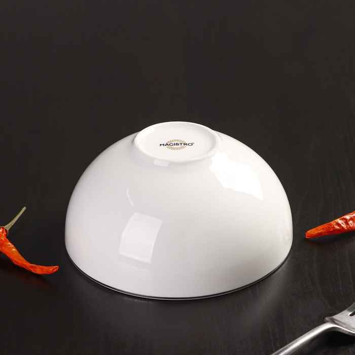 Производитель: Magistro; Габариты: 15 x 15 x 7; Страна: Китай; В боксе: 48 шт; Состав: Фарфор; Материалы: фарфор; Фасовка: по 1 шт; Индивидуальная упаковка: Без упаковки; Габариты товара: 15 см × 15 см × 7 см; Сертификат: СТР; Набор: Нет; Цвет: Белый; Диаметр, см: 15; Объём, л: 0,6; В наборе, шт.: 1; Объём, мл: 600; Тематика: Полоски, полоса; Рисунок: Да; Материал: Фарфор; Вид тарелки: Глубокая; Можно мыть в посудомоечной машине: Нет; Можно использовать в СВЧ-печи: Нет; Текстура: Гладкая; Особенности: С серебряной отводкой; Матовая поверхность: Нет; Для горячего: Да