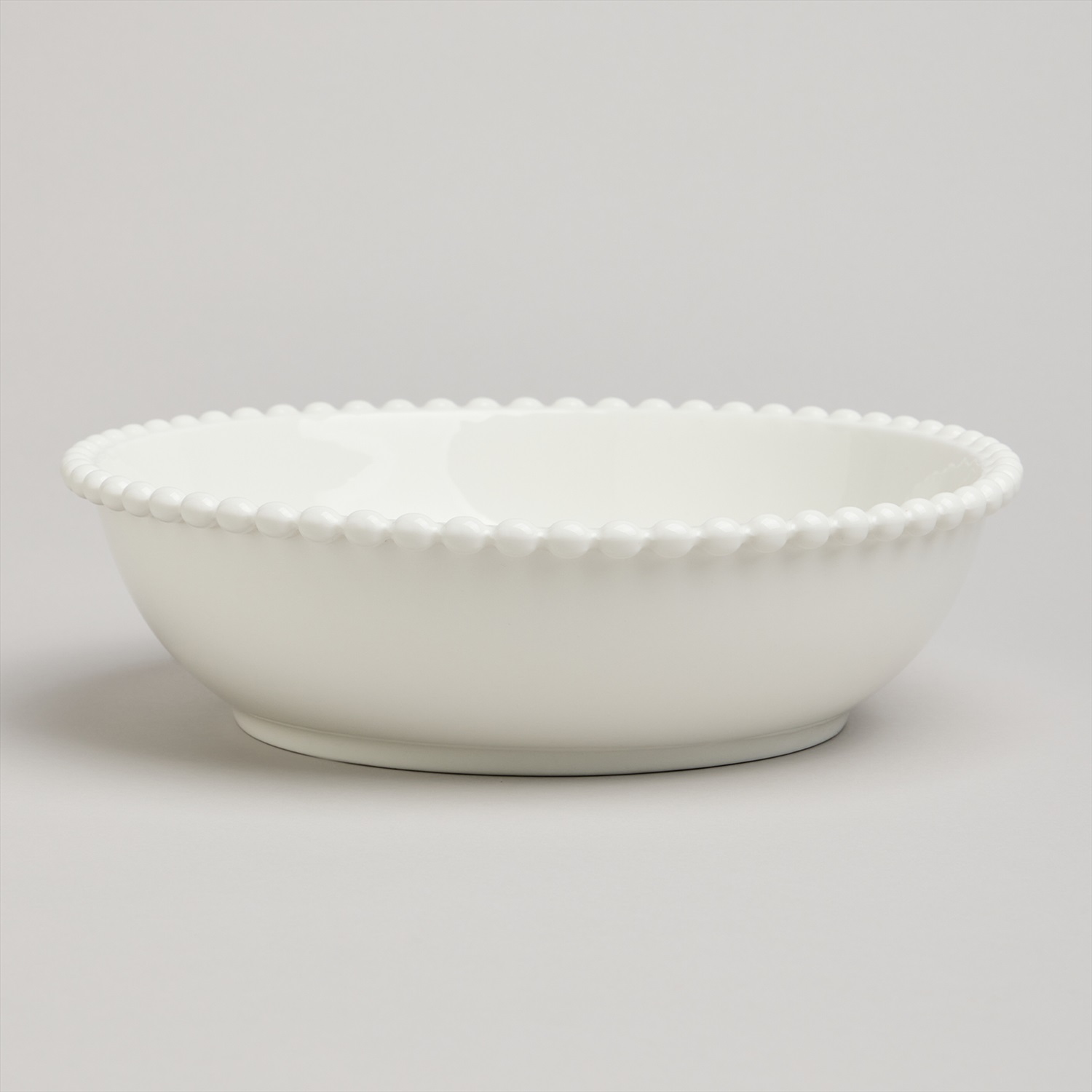 ТМ LEFARD коллекция "PEARL - ЖЕМЧУЖИНА" - трендовая, белоснежная, с оригинальным рельефом по краю в виде горошин, базовая для любой сервировки, выполнена из упрочненного фарфора. Салатник – это прекрасная подача холодных блюд и не только. Любая хозяйка – уже салатье, а салатники этой серии помогут красиво и оригинально подать её шедевр. Они универсальны, могут быть не только предметом сервировки и частью сервиза, но и самостоятельной посудой для хранения и разогрева продуктов. Ваш стол неотразим! Удобные формы и размеры. Прекрасно сочетается с любой декорированной посудой. Можно мыть в посудомоечной машине, использовать в микроволновой печи.
