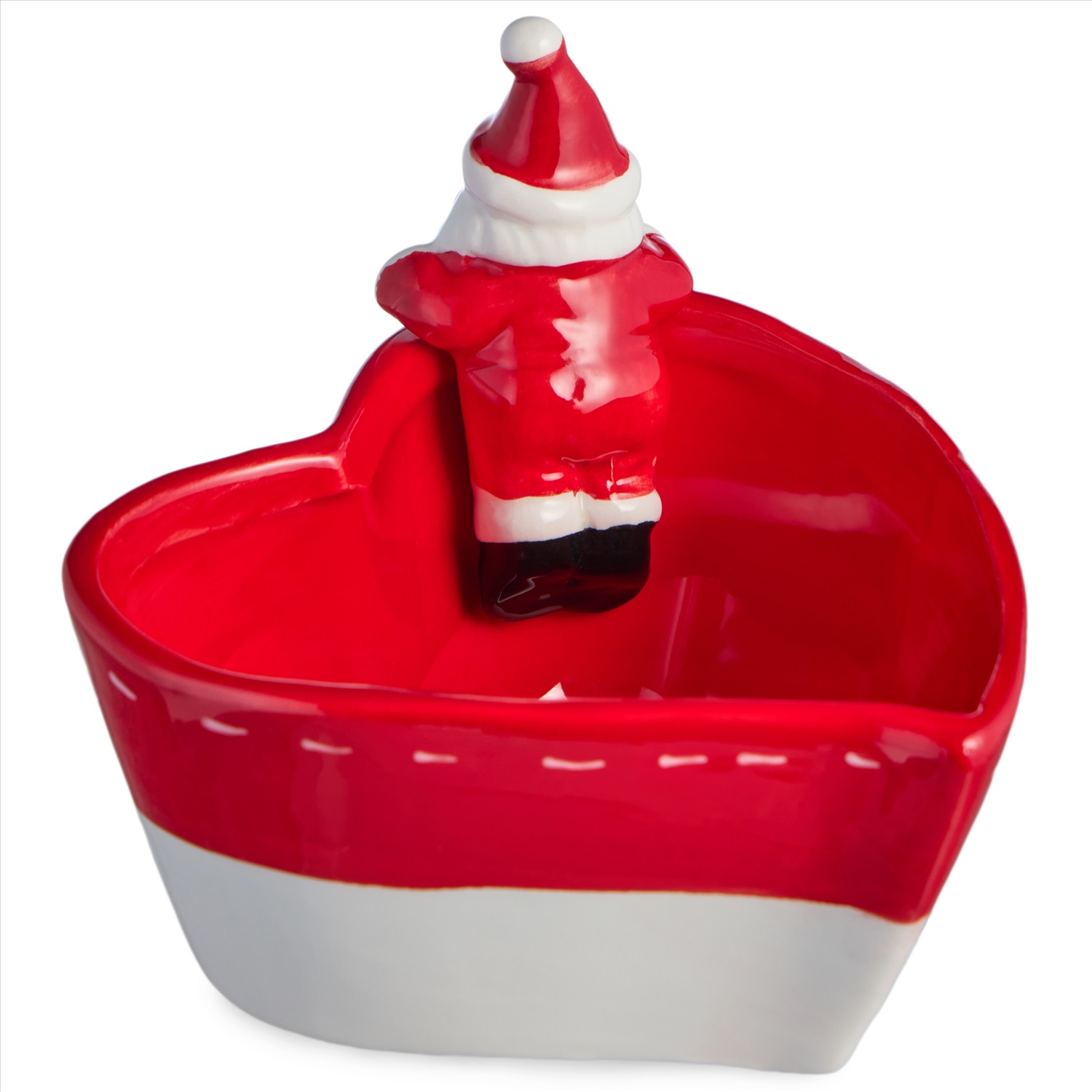 Красный, зелёный, белый — цвета, которые дышат радостью. Каждое блюдо — с мини-фигуркой Деда Мороза или Снеговика, словно вышедших из рождественской истории, чтобы стать частью вашего дома. Сердце, звезда, прямоугольник с декоративными швами — формы, полные любви и внимания. Гладкая глазурь, приятная на ощупь, с аккуратной росписью и объёмными элементами — всё здесь создано для того, чтобы радовать глаз и душу.
