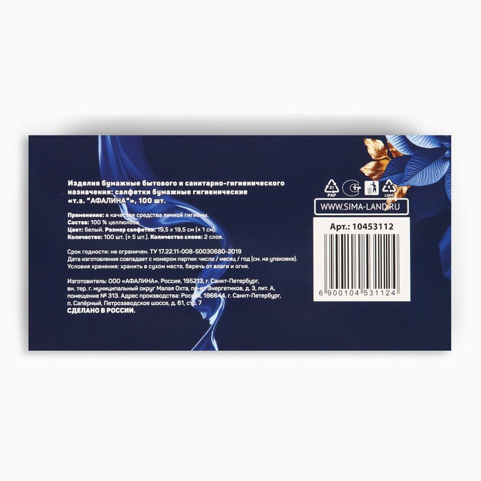 Производитель: Сима-ленд; Габариты: 4,5 x 21 x 11; Страна: Россия; В боксе: 40 шт; Состав: Бумага; Материалы: бумага; Фасовка: по 1 шт; Индивидуальная упаковка: Цветная картонная коробка; Сертификат: ЕАС; Цвет: Синий, Белый; Размер, см: 20 х 20; В наборе, шт.: 1; В упаковке, шт.: 100; Рисунок: Нет; Символ года: Нет; Тематика праздника: Новый год; Материал: Бумага; Ароматизированные: Нет; Тип бумаги: Двухслойная