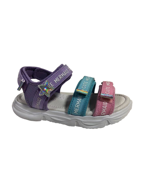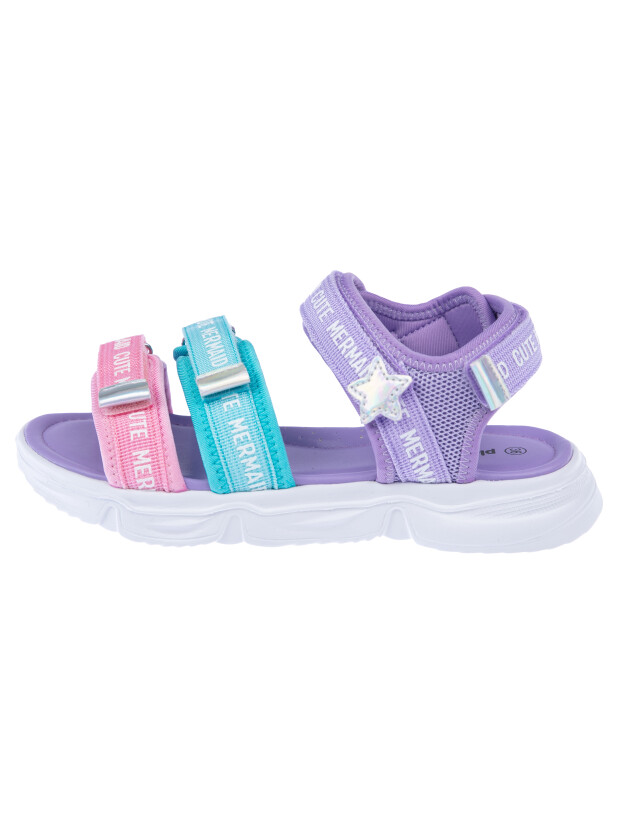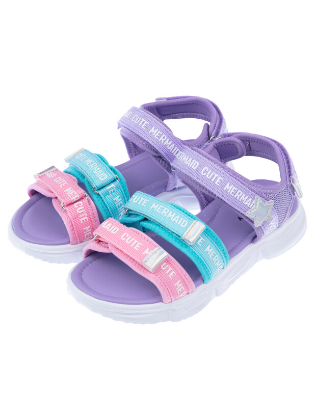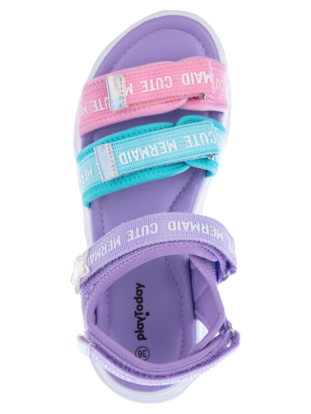 Сандалии из текстиля. Подкладка с высоким содержанием хлопка 80%. Кожаная стелька с анатомическим элементом. Устойчивая к истиранию подошва. Регулировка всех ремней на застежки-липучки.