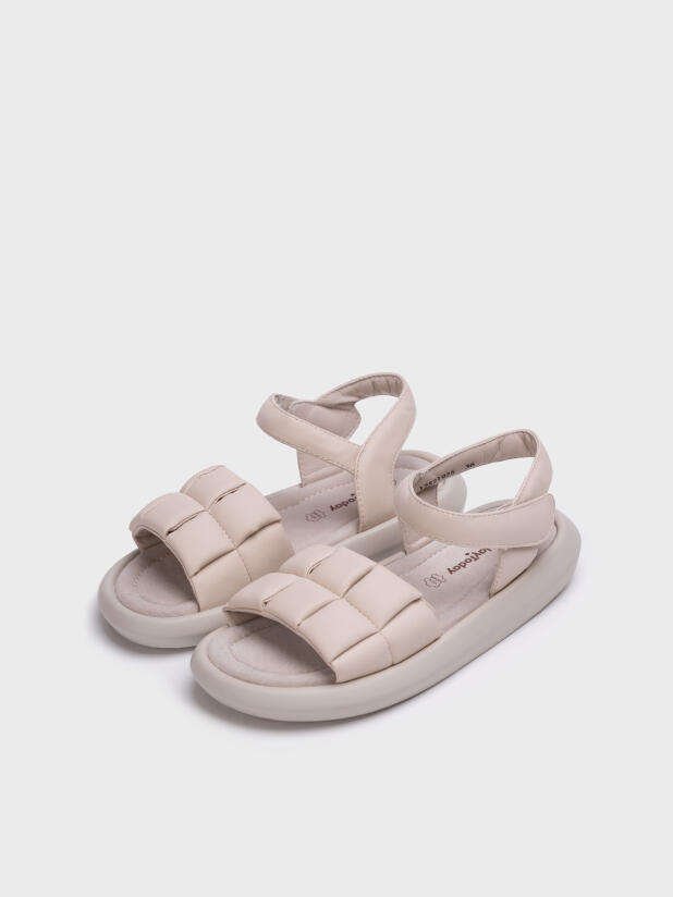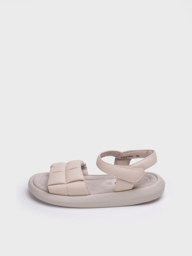 Трендовые дутые сандалии для девочки подростка. Верх обуви выполнен из мягкой искусственной кожи с эффектом "дутости". Стелька из натуральной кожи. Подошва из ЭВА легкая, гибкая и имеет хорошие амортизационные свойства. Модель маломерит на полразмера.