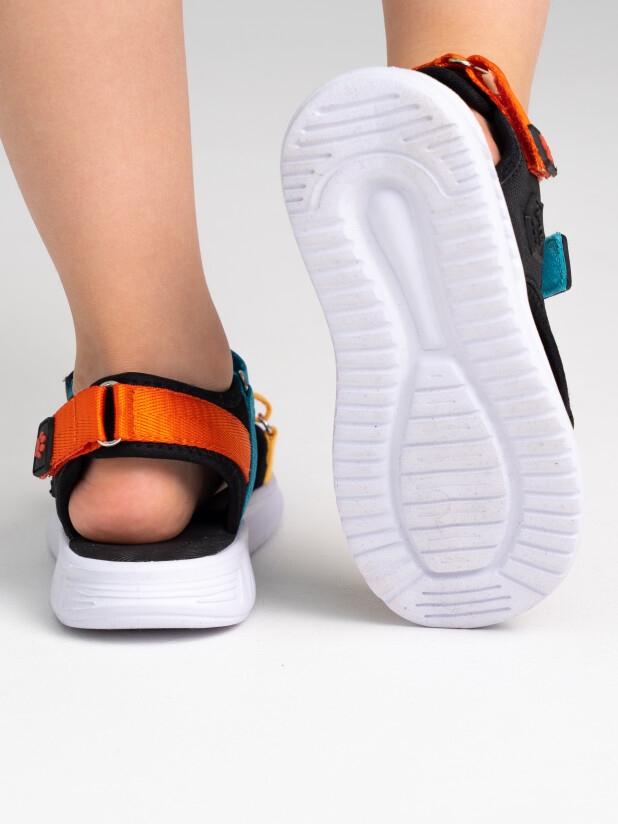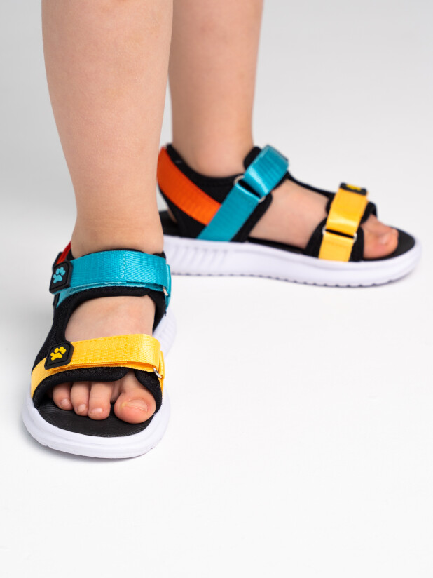 Сандалии из текстиля. Подкладка с высоким содержанием хлопка 80%. Легкая подошва. Регулируемая конструкция ремней на застежках-липучках.