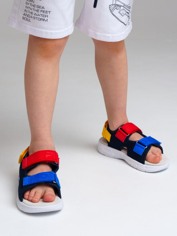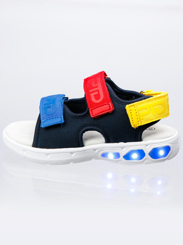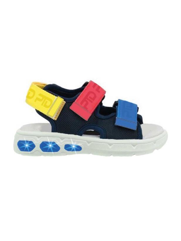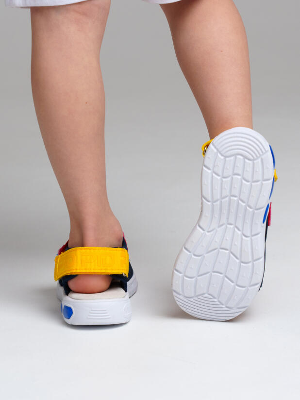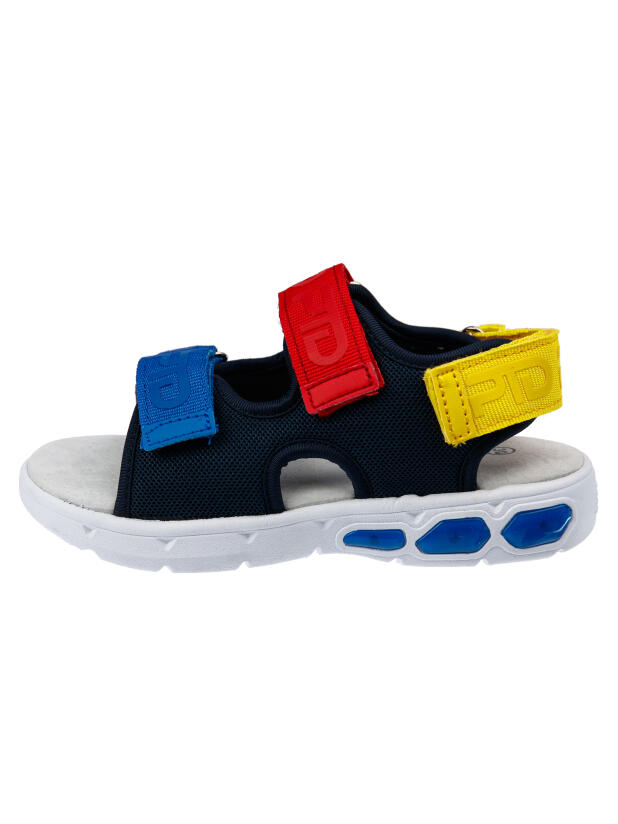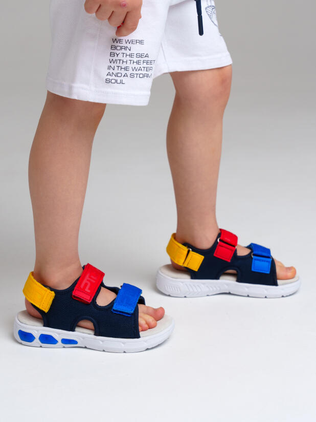 Сандалии детские для мальчика. Сандалии из дышащего текстиля. Стелька выполнена из натуральной кожи. Текстильная подкладка c высоким содержанием хлопка обладает высокой гигроскопичностью. Удобные ремни с липучками позволяют регулировать объем. Гибкая и легкая подошва из ЭВА имеет мигающие элементы flashlights.