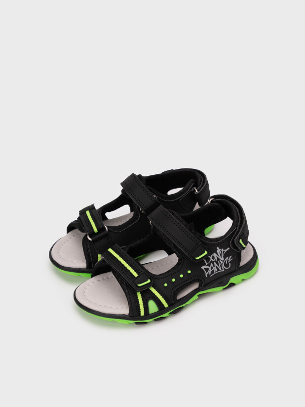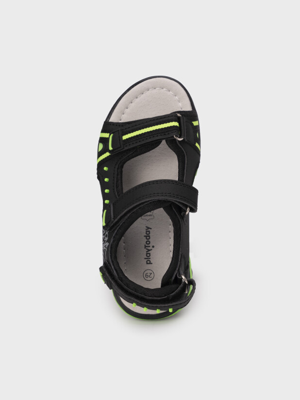 Сандалии детские для мальчика. Спортивный стиль и светоотражающий принт. Сандалии выполнены из искусственной кожи, обладающий высокими износостойкими свойствами. Стелька выполнена из свиной кожи. Текстильная подкладка c высоким содержанием хлопка 80% обладает высокой гигроскопичностью. Удобные ремни с липучками позволяют регулировать обувь на любой подъем. Гибкая двухсоставная подошва из ТПР имеет повышенную износостойкость.