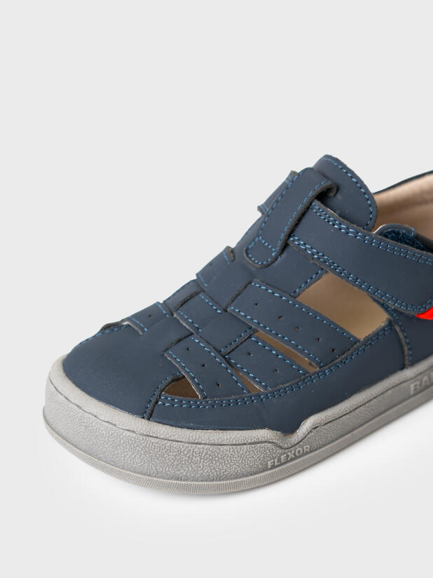 Сандалии для мальчика с закрытой носочной и пяточной частью выполнены из искусственного нубука. Удобный ремень с липучкой позволяют регулировать обувь на любой подъем и позволяют ребенку обуваться самостоятельно. Подкладка выполнена из натуральной свиной кожи. Стелька выполнена из натуральной свиной кожи. Подошва из ТПР гибкая и нескользкая. Подошва дополнительно прошита по бортику для дополнительной прочности и гибкости. Парфюмированная подошва имеет запах кокоса. Модель выполнена по технологии BAREFOOT (босоногая обувь): широкая носочная часть повторяет естественную форму стопы ребенка, легкая, гибкая и хорошо амортизирующая подошва, специальный рисунок протектора подошвы, имитирующий присоски осьминога для лучшего сцепления с дорогой.