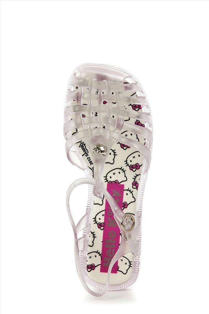 Пол: Детский универсальный Сезон: Лето Тип: Сандалии Материал верха: Синтетический материал Материал подкладки: Синтетический материал Материал стельки: Синтетический материал Отличные детские сланцы Hello Kitty. Модель исполнена из поливинилхлорида прозрачного цвета, оформленного переплетающимися ремешками на мысе и серебристой брендированной брошью на союзке. Ремешок с застежкой обеспечивает отличную фиксацию на ноге. Стелька модели украшена ярким принтом. Мягкая подошва дополнена противоскользящими вставками. Комментарии к товару