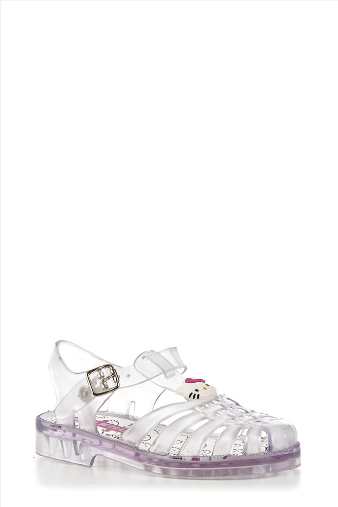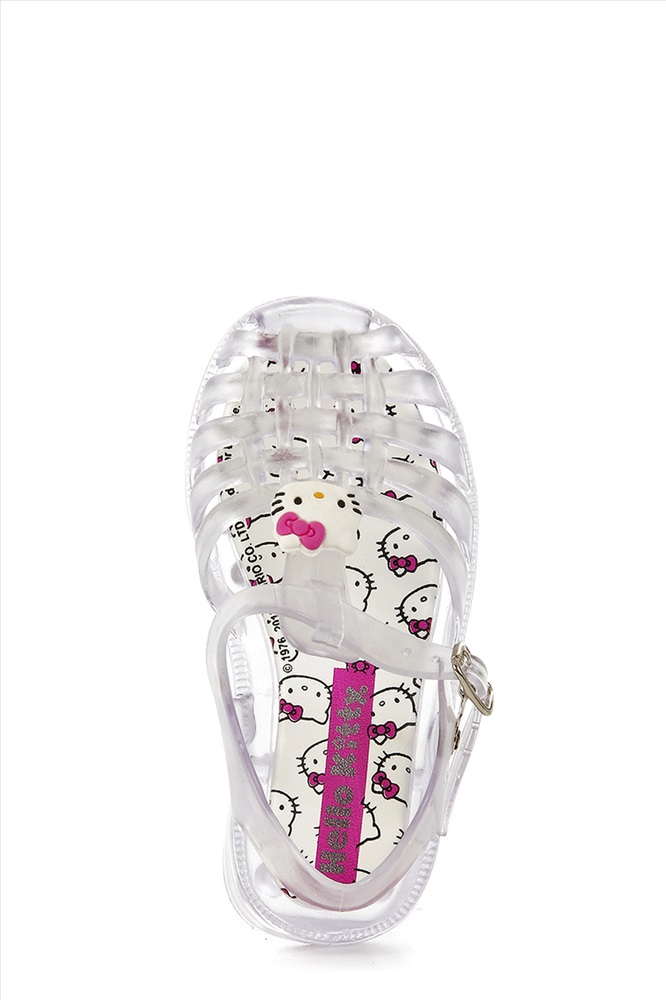 Отличные детские сланцы Hello Kitty. Модель исполнена из поливинилхлорида прозрачного цвета, оформленного переплетающимися ремешками на мысе и белой брендированной брошью на союзке. Ремешок с застежкой обеспечивает отличную фиксацию на ноге. Стелька модели украшена ярким принтом. Мягкая подошва дополнена противоскользящими вставками.