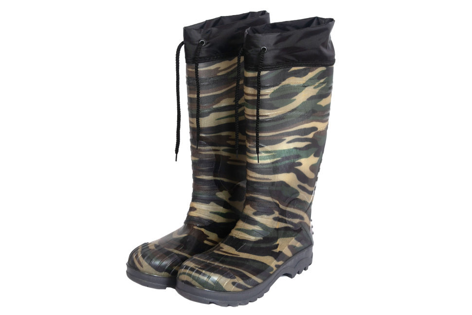 Материал верха: ПВХ; Сезон: Весна - Осень - Зима; Пол: Мужской; Страна бренда: Россия; Страна производитель: Россия; количество в коробе: 8 пар; Цвет: Камуфляж; Свойства: С надставкой,вставной чулок