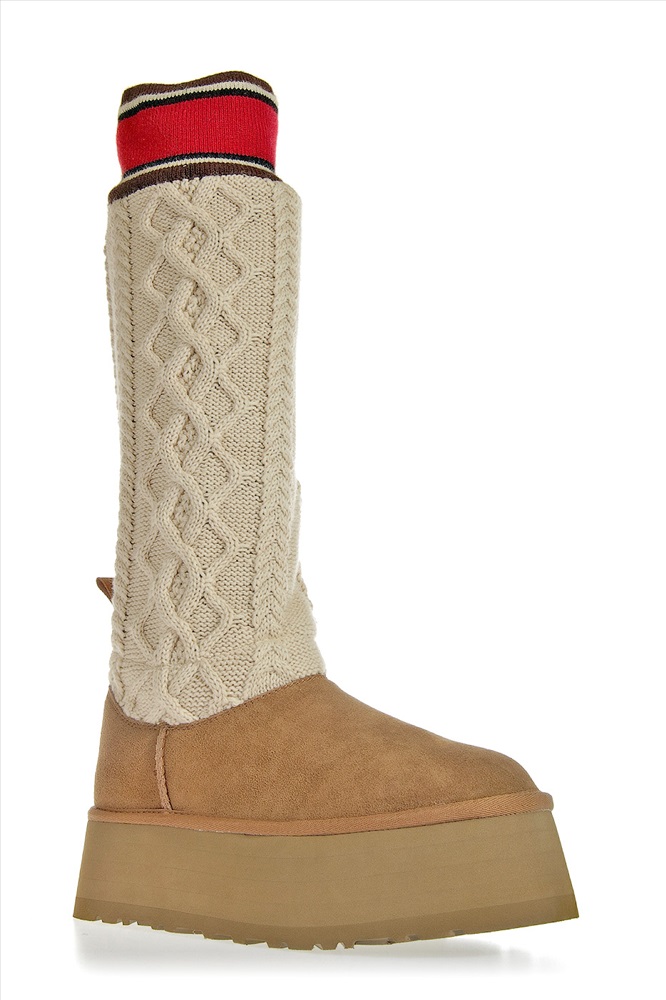 Унты выполнены из натуральной замши, верх оформлен объемными швами. Задник укреплен вставкой и дополнен логотипом бренда. Внутренняя отделка из натуральной шерсти.