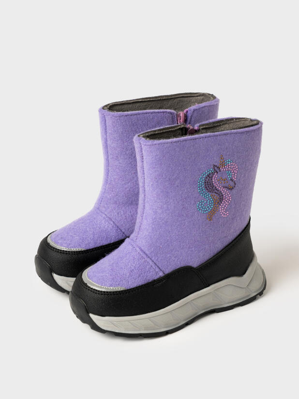 О товаре Детские зимние сапоги-валенки для девочки от PlayToday — стильная и тёплая обувь на каждый день в холодное время года. Современная интерпретация традиционных валенок: мягкое, но плотное голенище из войлока с 50% шерсти сочетается с носочной и пяточной частью из износостойкой искусственной кожи. Внутри — густой шерстяной мех (80%) и съёмная стелька для дополнительного уюта и тепла. Преимущества модели: + утеплённая подкладка из натуральной шерсти — тепло и комфорт даже при минусовых температурах + голенище из войлока с содержанием шерсти 50% — сохраняет тепло и обеспечивает воздухопроницаемость + износостойкие накладки в зонах максимального трения — надолго сохраняют внешний вид + глубокий протектор подошвы из терморезины — отличное сцепление с поверхностью + внутренняя молния — удобно надевать даже самостоятельно + формоустойчивый задник — поддержка стопы и правильная посадка + лёгкий вес — ножки не устают даже при длительных прогулках Когда и как носить: Отлично подходят для зимних прогулок, игр на улице, походов в детский сад и школу. Идеальны на каждый день, когда важно сочетание тепла, комфорта и практичности. Советы по стилю: Сочетайте с ярким зимним комбинезоном, шубкой из экомеха или классической паркой от PlayToday. Дополните вязаной шапкой и варежками в тон — получится уютный и продуманный зимний образ. Размеры: 26-32 для девочек дошкольного и младшего школьного возраста от 3 до 7 лет. Детские зимние сапоги-валенки для девочки от PlayToday — тепло, надёжно и красиво! СОСТАВ 75% войлок (50% шерсть, 50% полиэстер); 25% искусственная кожа Уход Рекомендуется чистка чистящими средствами специально предназначенными для синтетических материалов. Бренд PlayToday АРТИКУЛ 32422710 Цвет Черный, Фиолетовый Возрастная категория Дошкольники Пол Женский Сезон Зима Год коллекции 2025 Страна бренда Германия Страна производства Китай Возраст 3 года, 4 года, 5 лет, 6 лет, 7 лет Маркировка Обувная продукция Миниколлекция Unicorn kuromi