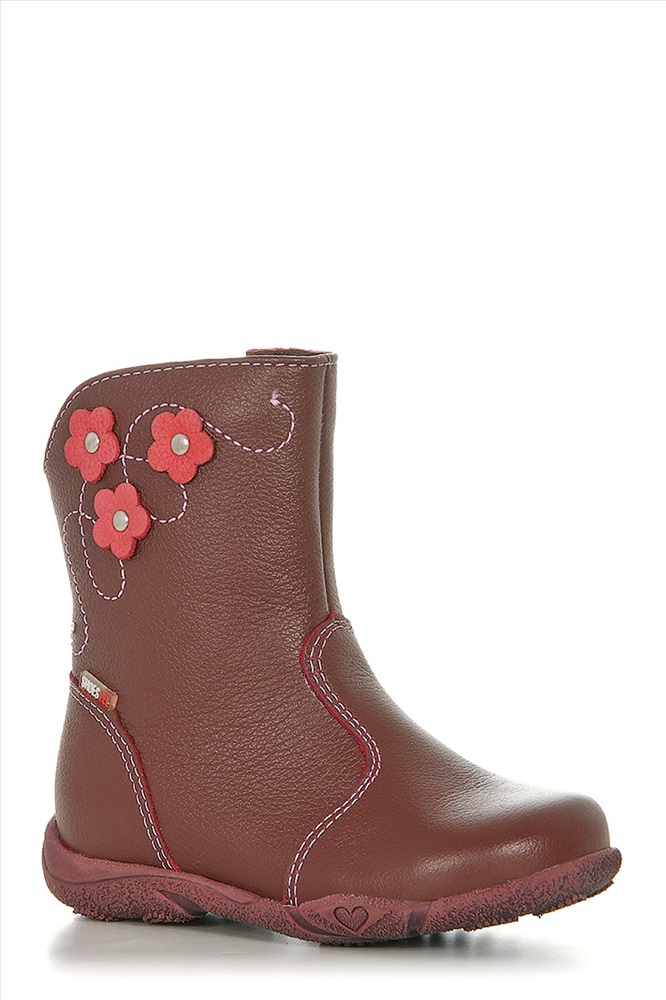 Демисезонные сапоги из натуральной кожи с теплой байковой подкладкой. Съемная стелька с супинатором, гибкая устойчивая подошва. Застежка молния сбоку надежно зафиксирует сапожок на ноге.