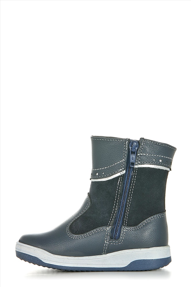 Демисезонные сапоги из натуральной кожи с теплой байковой подкладкой. Съемная стелька с супинатором, гибкая устойчивая подошва. Застежка молния сбоку надежно зафиксирует сапожок на ноге.