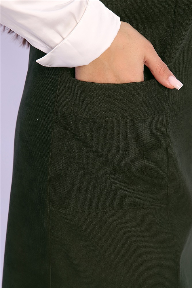 Создайте свой образ с сарафаном из микровельвета, ведь к нему можно подобрать и классическую офисную блузку, и нарядную праздничную блузку, и теплую водолазку. Базовые расцветки сарафана легко впишутся в ваш гардероб. Сарафан имеет полуприталенный силуэт, длина до середины колена. Благодаря отрезному бочку хорошо садится по фигуре, по бокам два накладных кармана с клапанами. Глубокий V-образный вырез на полочке обработан обтачкой. Ткань микровельвет проста в уходе, не мнется, не электризуется, не дает усадку.
