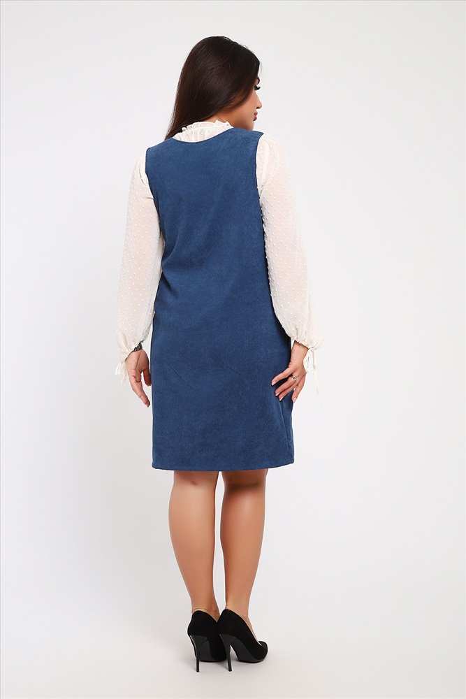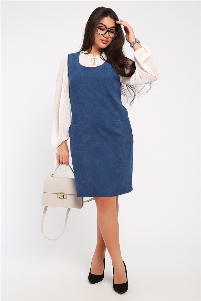 Создайте свой образ с помощью универсального вельветового сарафана. Это может быть и деловой, и повседневный, и праздничный образ, в зависимости от того, какую блузку или рубашку вы к нему подберете. Сарафан выполнен из микровельвета, ткани, очень легкой и простой в уходе. Вельвет не мнется, отлично сохраняет форму и цвет, не электризуется, к нему ничего не липнет. Сарафан прямого кроя, округлая горловина обработана обтачкой, полочка отрезная по линии чуть ниже талии. Глубокая пройма позволит комбинировать сарафан с любой блузкой, водолазкой,лонгсливом. Длина изделия до середины колена при росте 164см. У модели на фото рост 170см. По бокам нижней части полочки расположены внутренние карманы. Данная модель универсальна и подойдет на любую фигуру, скроет недостатки и подчеркнет достоинства. В офисе, на работе, на прогулке в этом сарафане вы будете чувствовать себя уверенно и комфортно.