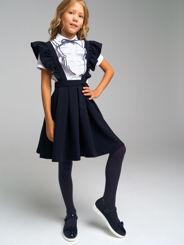 Школьный текстильный сарафан для девочки подростка. Синий текстильный сарафан идеален в школу. Платье для школы выполнено из ткани с содержанием вискозы, что обеспечивает максимальный комфорт для школьницы во время занятий. Бретели сарафана крепятся на пуговицы и снимаются при желании.