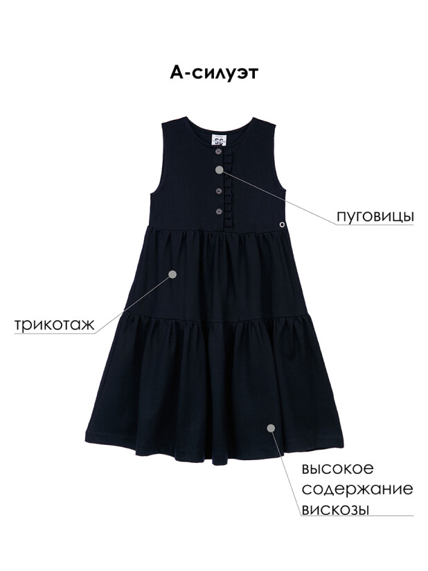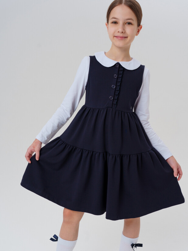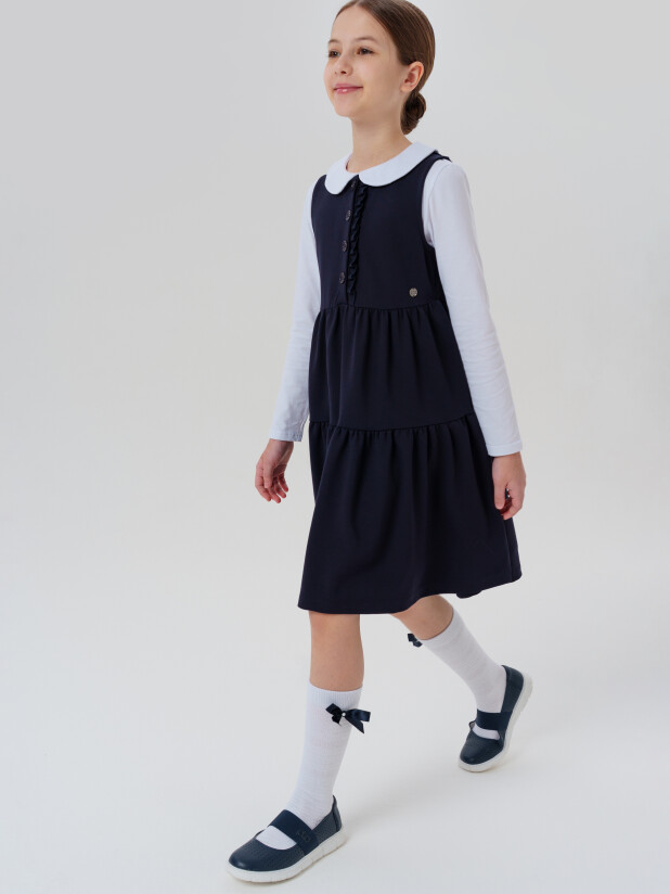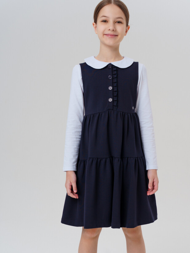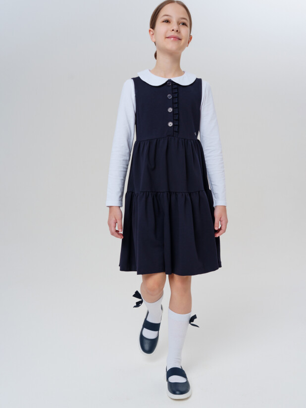 Классический тёмно-синий школьный трикотажный сарафан А-силуэта для девочки подростка от PlayToday — удобная и стильная модель для школьного гардероба. Лаконичный дизайн и комфортная посадка делают этот классический детский сарафан для школы отличным выбором на каждый день.
