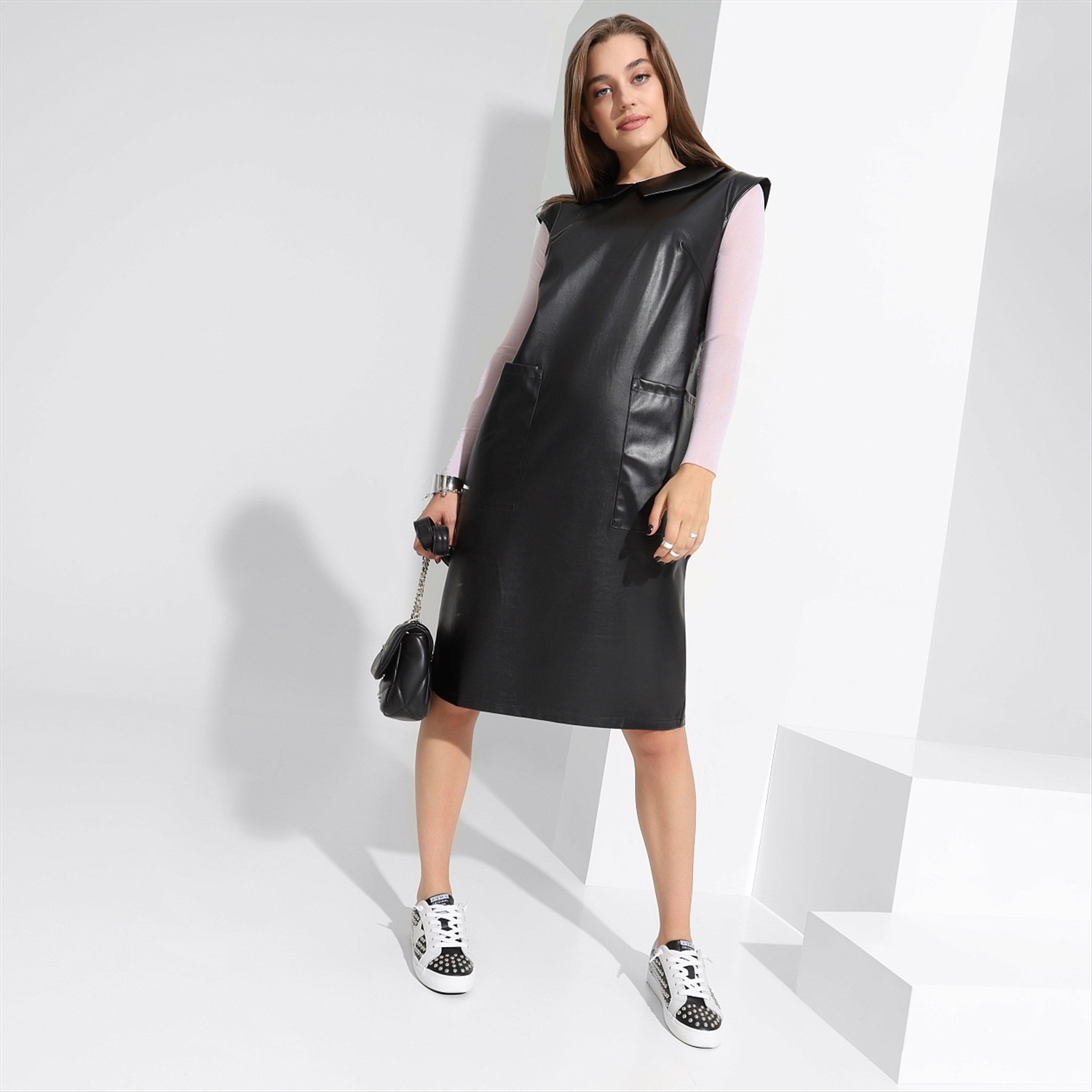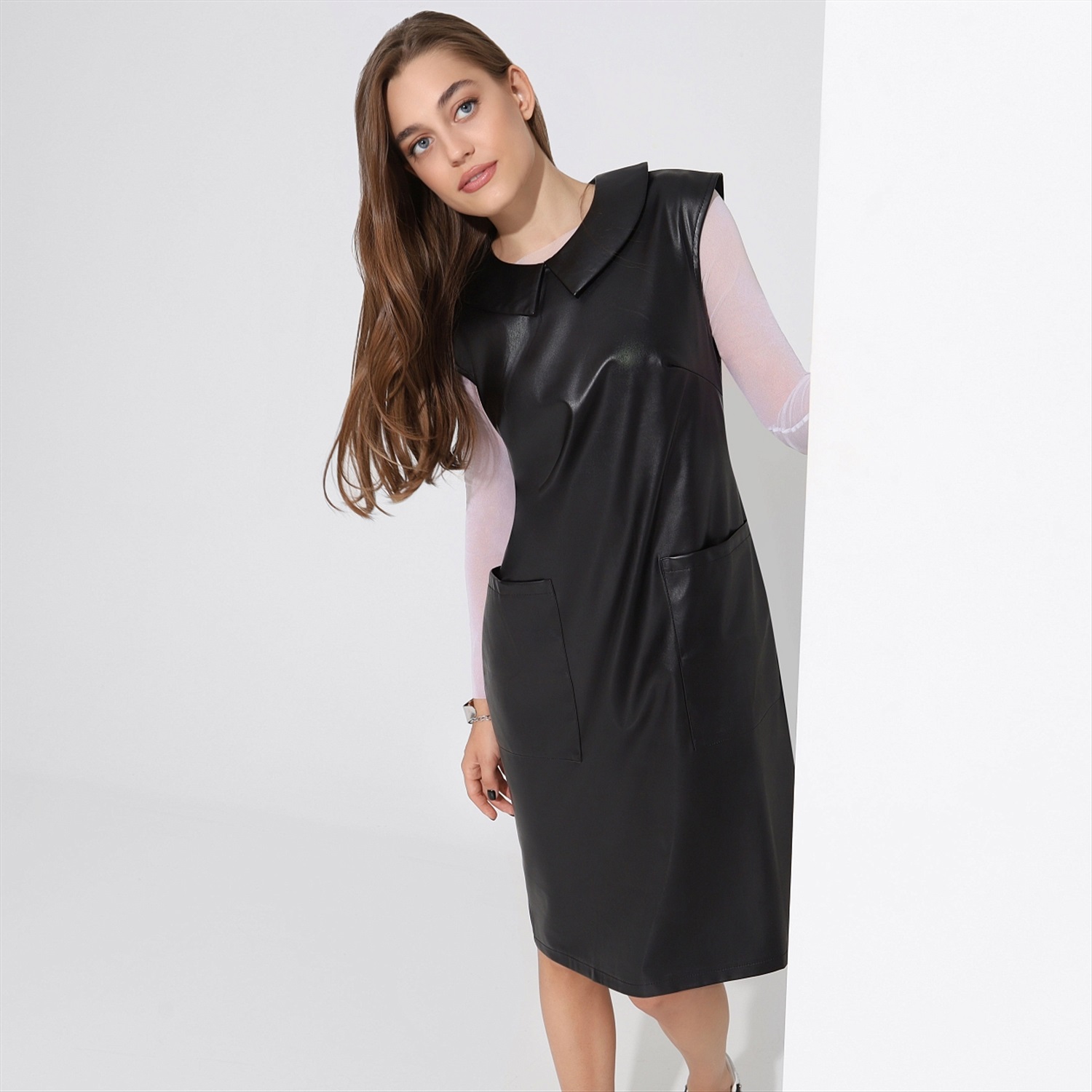 Трендовый сарафан из экокожи. Облегает, выделяет, волнует. ОН не сможет отойти от вас. Никуда. Сила притяжения этого материала работает безотказно. Или блеск ваших глаз? А, может, всё вместе!
