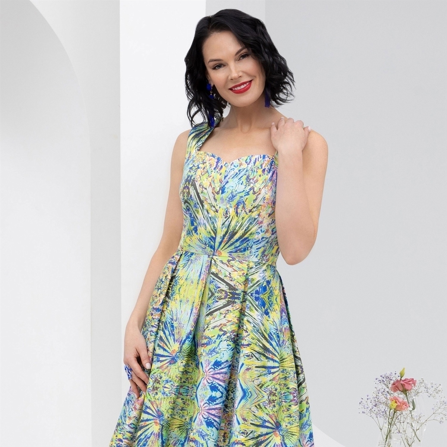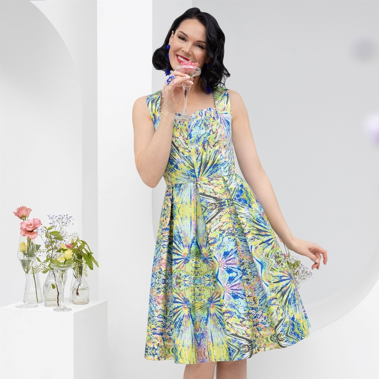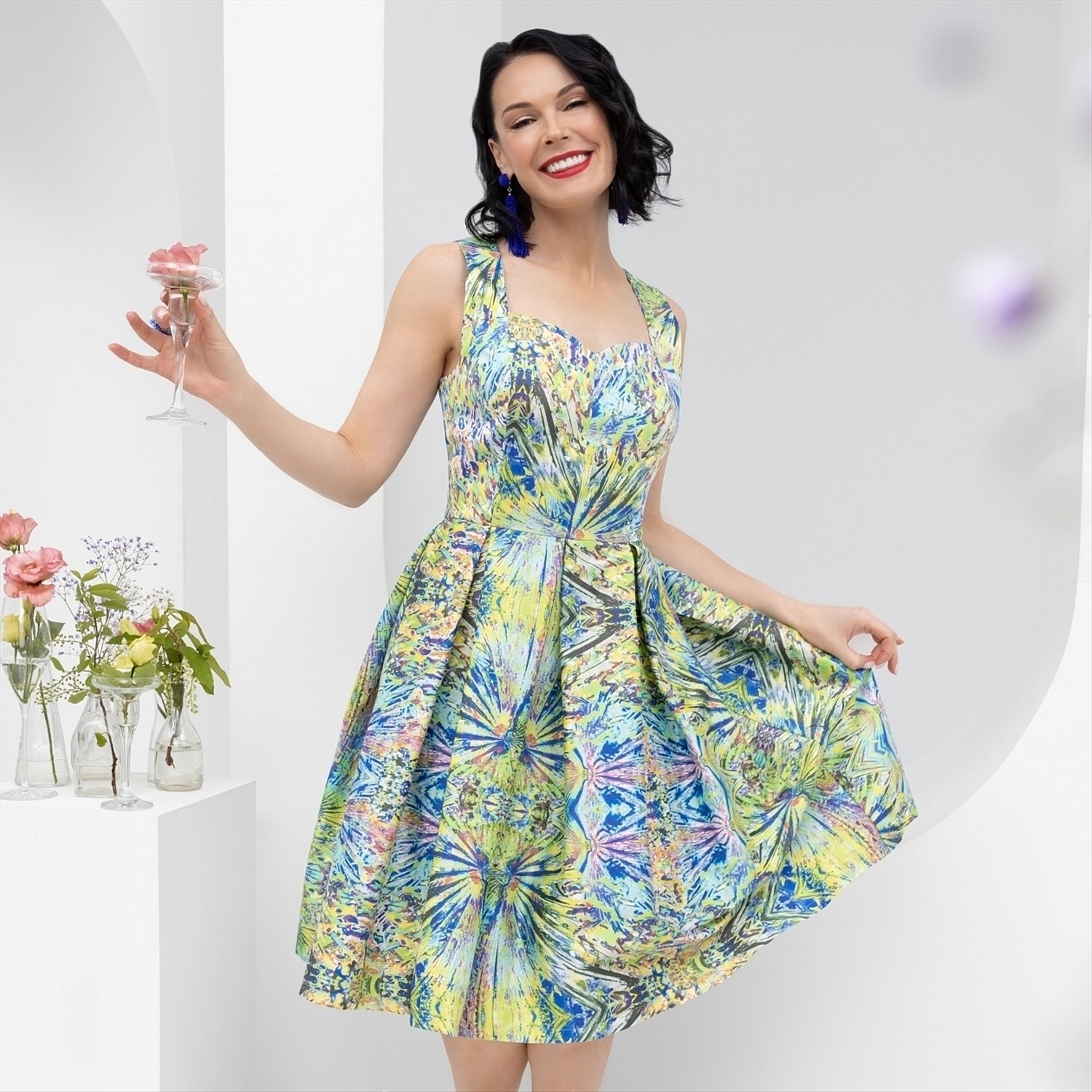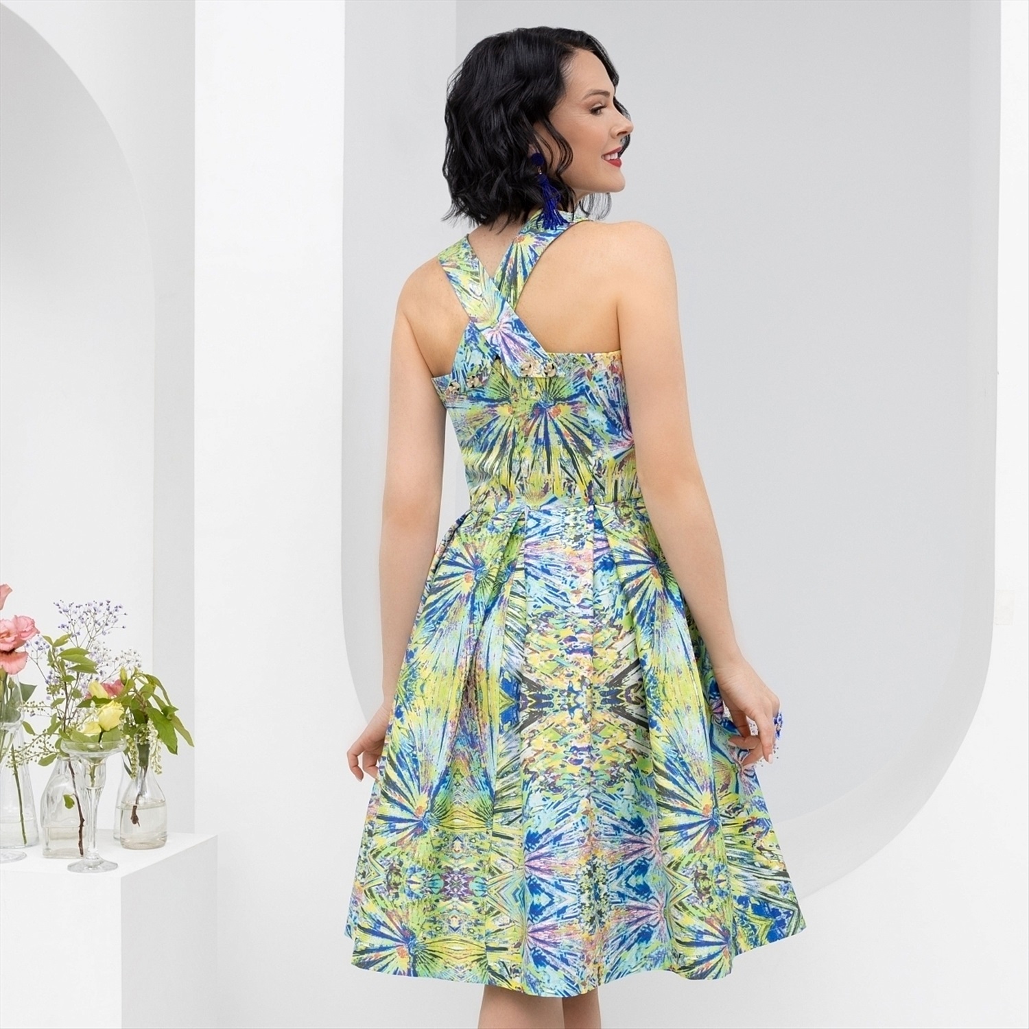 ТН ВЭД: 6204430000; Состав: «Тиси-коттон» (50% хлопок, 45% п/э, 5% эластан); Тип ткани: Текстиль; Длина: Миди; Основной цвет ткани: Разноцветный; Вид принта: орнамент; Сезон: Лето