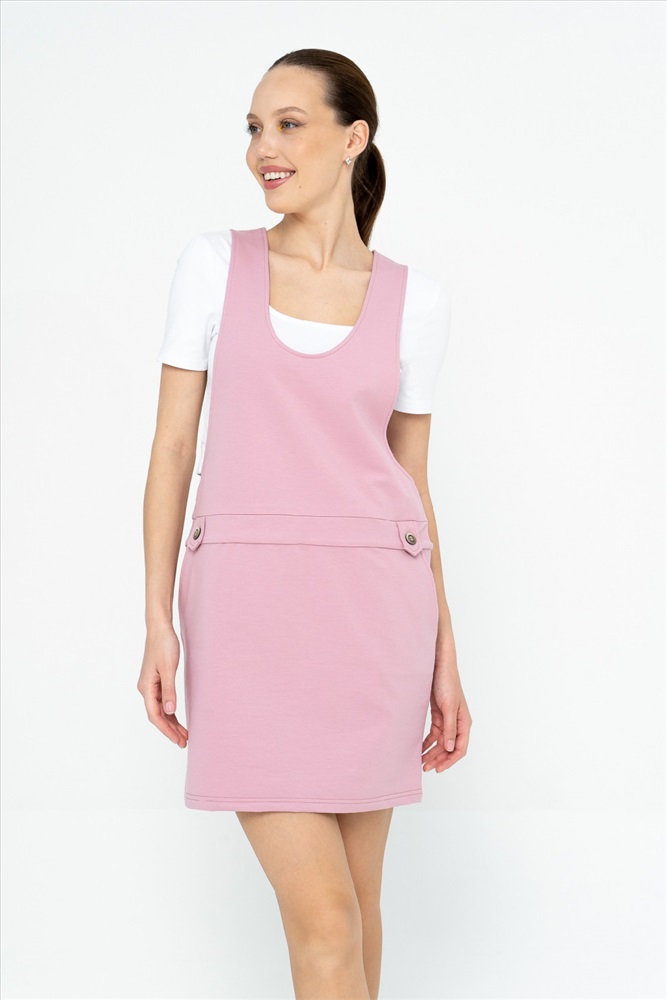 Стильный и модный сарафан из хлопкового футера длиной выше колена. Модель с интересным кроем выгодно подчеркивает фигуру, с функциональными карманами, стильной спинкой. В сочетании с нашими футболками получается прекрасный комплект, который подходит как для повседневной жизни, для прогулок и путешествий, так и для вечеринки. Получится образ в стиле «спорт-шик»