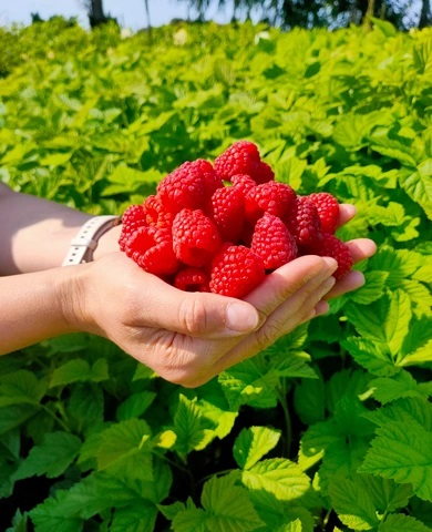 Ягоды этого сорта впечатляют размерами: их масса составляет от 8 до 12 г. Вкус сладкий, насыщенный, цвет ярко-красный. Плоды прекрасно сохраняют форму и цвет даже при транспортировке, заморозке и последующем размораживании. Урожай появляется на побегах текущего года в начале августа. Куст крепкий, с прямостоячими побегами до 180 см, подходит для выращивания как в открытом, так и закрытом грунте. Один из лучших сортов польской селекции, устойчив к морозам до −35 °C.