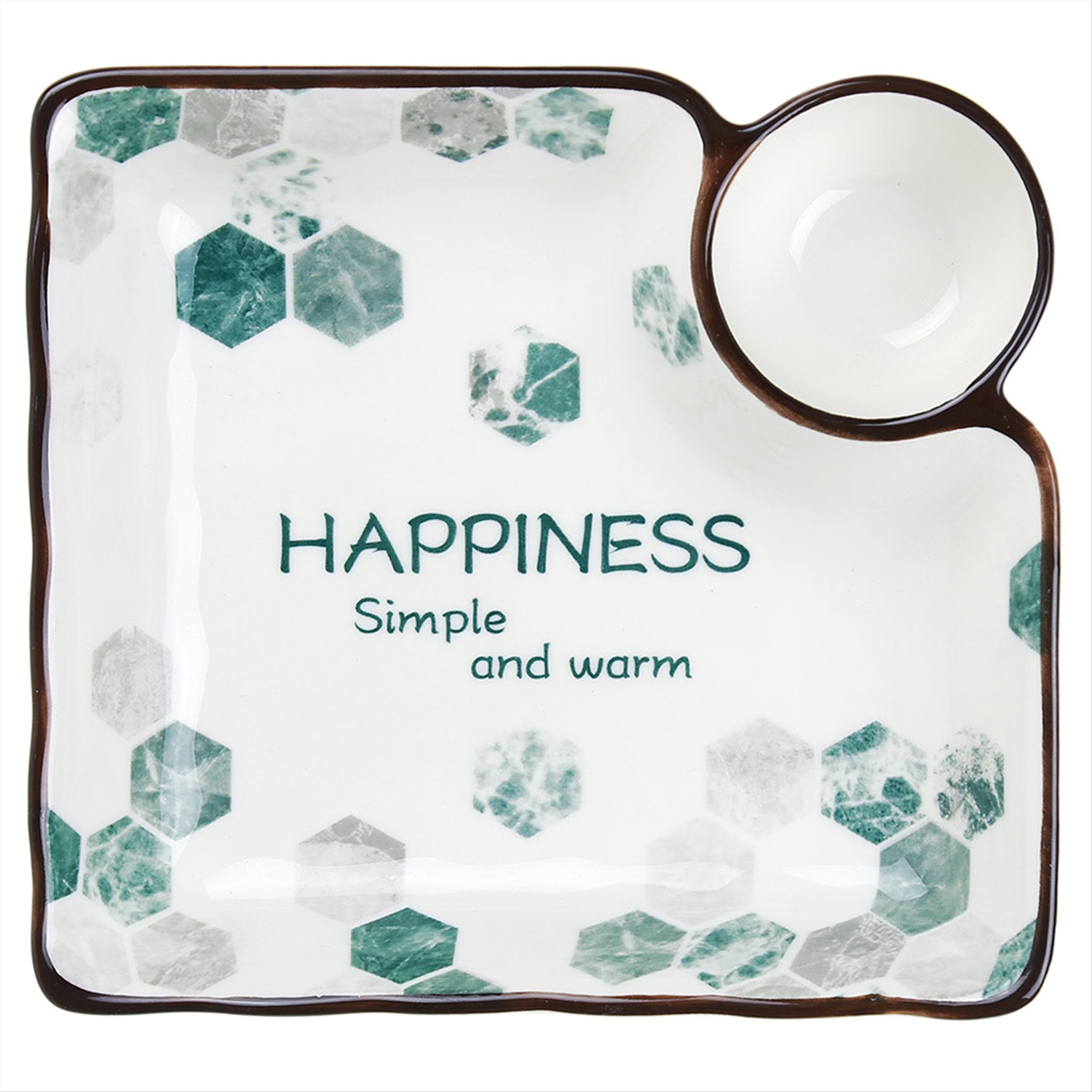 "Счастье" Блюдо фарфоровое 173х163х35мм, с соусником, с деколью, волнистый край, отводка (Китай)