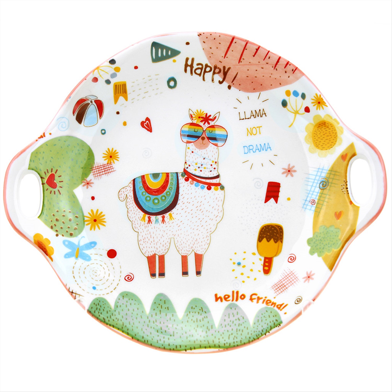 "Счастливая" Блюдо фарфоровое 244х210х40мм, с ручками, подглазурная деколь (Китай)