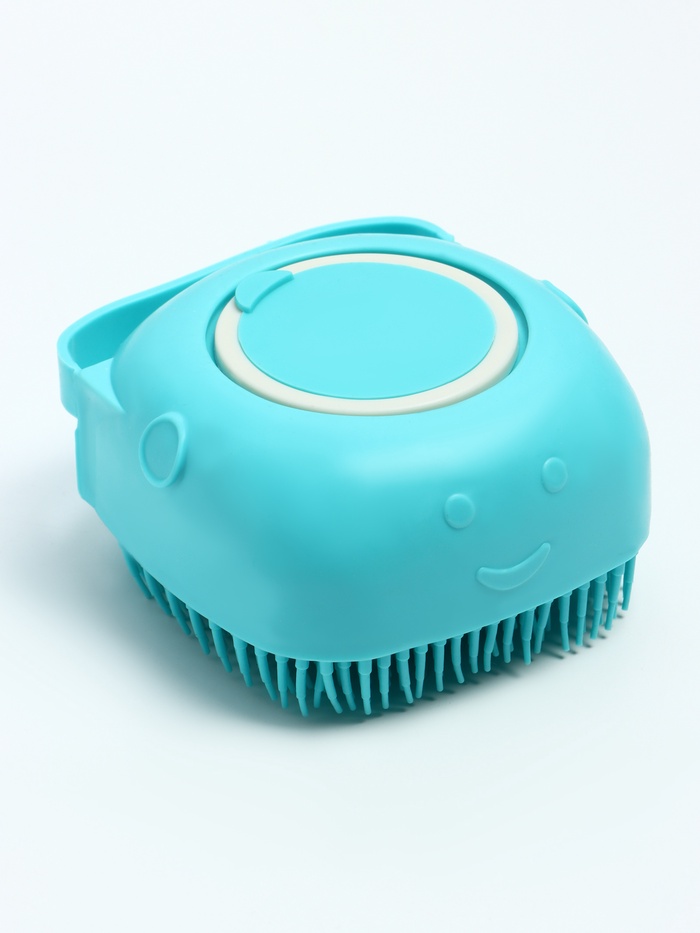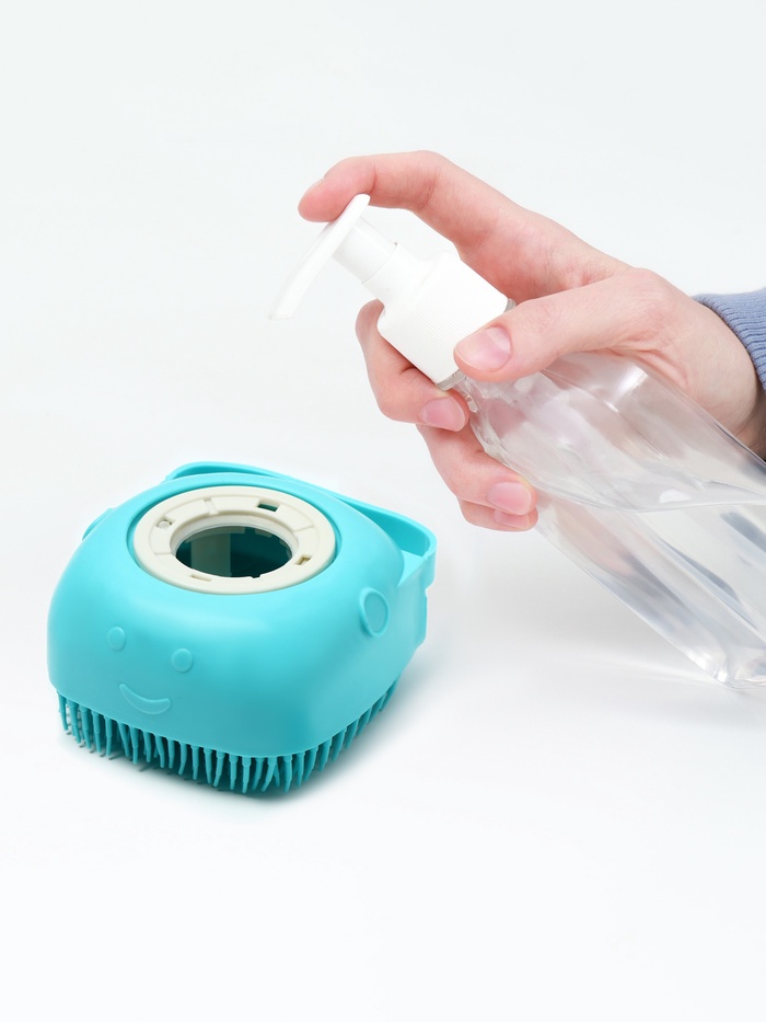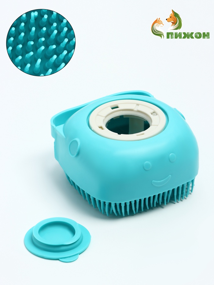 Щётка для мытья и массажа животных, с емкостью для шампуня, бирюзовая