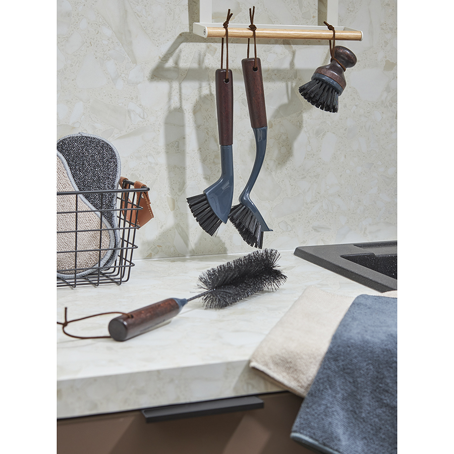 Коллекция: Cleans Название товара: Щетка для посуды Cleans, 27 см Артикул: SS000069 Материал: полипропилен, термопластик, бамбук Цвет: коричневый/темно-серый Вес: 80 гр Размеры в упаковке (ШхГхВ): 28,5 х 18 х 7,5 см Размеры без упаковки (ШхГхВ): 28,5 х 18 х 7,5 см Щетка Cleans от дизайнерского бренда Smart Solutions – удобный в использовании аксессуар, который поможет качественно очистить посуду от остатков пищи и сильных загрязнений, а также легко проникнет в самые труднодоступные места, такие как дно банки, чайника, вазы, углы противня и другие. Особенности и преимущества: - Удлиненная ручка из бамбука эргономичной формы обеспечивает удобный хват и комфортное использование. - Длинная щетина из полипропилена эффективно очищает посуду, не повреждая ее поверхность. - Прочный и надежный корпус из термопластика гарантирует изделию практичность и долгий срок службы. - Благодаря современному дизайну щетка Cleans гармонично вписывается в интерьер любой кухни. - Наличие специального подвеса позволяет компактно хранить аксессуар на настенных держателях. Материалы: бамбук, полипропилен, термопластик. Размеры: 7х6,5х27 см. Комментарии к товару