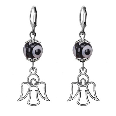 SE-MKA35-05 Серьги Ангел-хранитель (помощь и защита), бусины Дзи из агата
