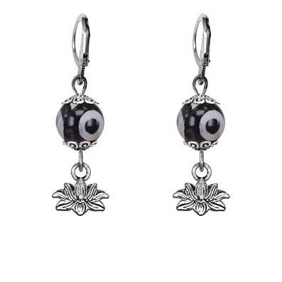 Состав: металл (бижутерный сплав с покрытием под серебро), бусина Дзи из натурального агата.