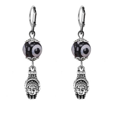 SE-MKA35-2056 Серьги Рука Будды (защита, духовное развитие), бусины Дзи из агата