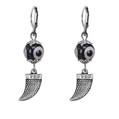 SE-MKA35-2077 Серьги Клык (сила, мужество, воля, энергия), бусины Дзи из агата