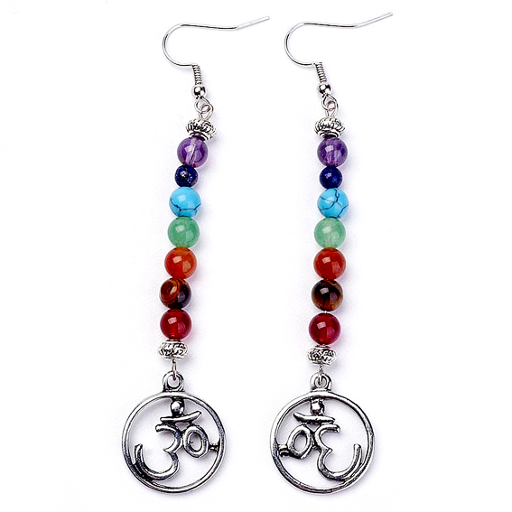 SE005-1 Серьги Семь чакр, Ом, с натуральными камнями