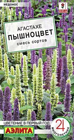 Семена Агастахе Пышноцвет (лофант) – многолетнее, пряно-ароматическое растение-медонос, высотой 60-65 см. В ландшафтном дизайне это истинная находка для создания эффектных цветочных вертикалей. Контрастная смесь гармонично впишется в состав клумбы или выступит сольной культурой. Используется в цветниках природного стиля, в лекарственных садиках. Рассаду следует высаживать в солнечных частях участка. В холодных, более северных регионах рекомендуется укрытие на зиму. На одном месте смесь хорошо растет и цветет около 5 лет. С 3-4-го года возможно вегетативное размножение делением куста.