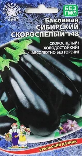 Баклажан Сибирский скороспелый 148 — сорт, который хорошо растет и в открытом грунте, и в теплице. Скороспелый. Куст компактный, с невысоким штамбом. Плоды удлиненные, до 180 г., красивые, темно-фиолетовые. Вкусовые качества — высокие.
