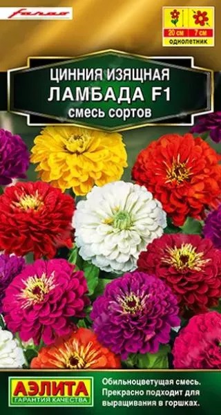 Семена Цинния Ламбада смесь сортов F1. Великолепная смесь низкорослой циннии с обильным цветением от итальянской компании Farao. Кусты компактные, выровненные, высотой около 20 см, сохраняют форму на протяжении всего сезона. Соцветия крупные, диаметром 7 см, держатся на растении до 30 дней. Красивая смесь идеальна для горшечного выращивания. Отлично подходит для бордюров и переднего плана цветников.