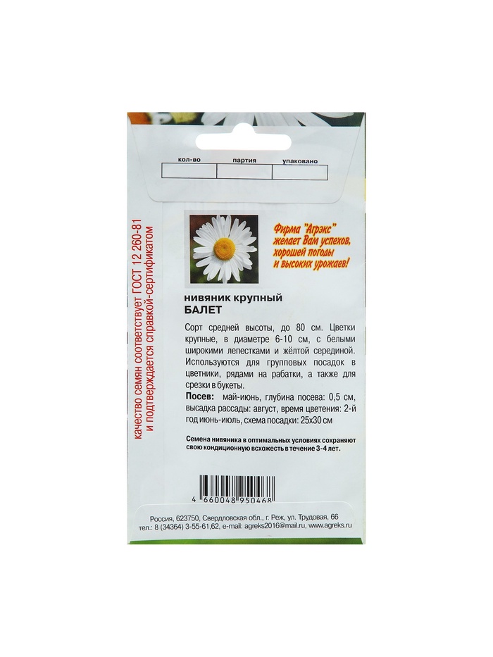 Производитель: АГРЭКС; Габариты: 15 x 8 x 0,1; Страна: Россия; В боксе: 500 шт; Состав: См. на упаковке; Материалы: см. на упаковке; Фасовка: по 10 шт; Индивидуальная упаковка: Без упаковки; Сертификат: Не подлежит сертификации; Цвет: Белый; Агрономический срок годности, лет: 3, 5; Вегетация: Однолетники, Многолетники; Особенности выращивания: Открытый грунт; Сухоцвет: Нет; Махровые: Нет; По форме куста: Кустовая; Назначение: Для создания цветников, клумбы; Отношение к свету: Светолюбивые; Разновидность: Цветущее; Нуждаются ли в стратификации: Нет; Фиксированная цена: Да