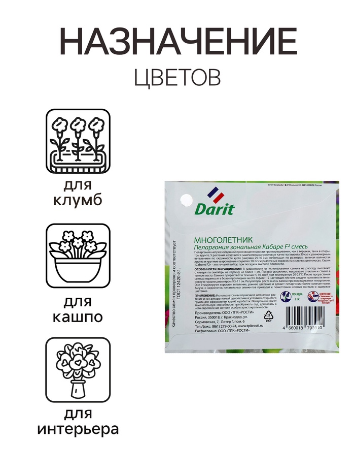 Производитель: Агроуспех; Габариты: 11,5 x 11,5 x 0,1; Страна: Россия; В боксе: 100 шт; Состав: Семена; Материалы: семена; Фасовка: по 10 шт; Индивидуальная упаковка: Без упаковки; Сертификат: Не подлежит сертификации; Цвет: МИКС; Высота, см: 90; Вегетация: Многолетники, Однолетники; Вид: Пеларгония; Посев на рассаду: Январь, Февраль, Март, Ноябрь, Декабрь; Посев (посадка) в грунт: Март, Май, Апрель, Июнь, Июль; Цветение период: Июль, Май, Июнь, Апрель; Место выращивания: Подоконник, балкон, Комнатное выращивание, Открытый грунт; Подходит для балкона: Нет; Сухоцвет: Нет; Махровые: Нет; Высота растений: До 30 см; По форме куста: Кустовая; Назначение: Для создания цветников, клумбы; Отношение к свету: Рассеянный свет; Разновидность: Цветущее; Вид: Семечки; Нуждаются ли в стратификации: Нет; Фиксированная цена: Да