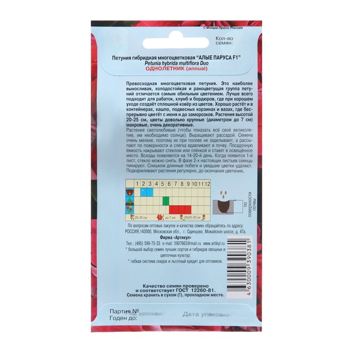 Производитель: Артикул; Габариты: 15 x 8 x 0,5; Страна: Россия; В боксе: 190 шт; Состав: См. на упаковке; Материалы: см. на упаковке; Фасовка: по 1 шт; Индивидуальная упаковка: Без упаковки; Сертификат: Не подлежит сертификации; Цвет: Красный; Агрономический срок годности, лет: 5; Вегетация: Однолетники; Вид: Петуния; Особенности выращивания: Открытый грунт; Сухоцвет: Нет; Махровые: Нет; По форме куста: Кустовая; Назначение: Для создания цветников, клумбы, Для балкона, веранды Наша коллекция семян включает как популярные овощи, так и яркие цветы, идеально подходящие для вашего сада. С нами вы сможете наслаждаться богатым урожаем и великолепием цветения в любое время года. Данные семена идеально подойдут для выращивания в вашем саду.