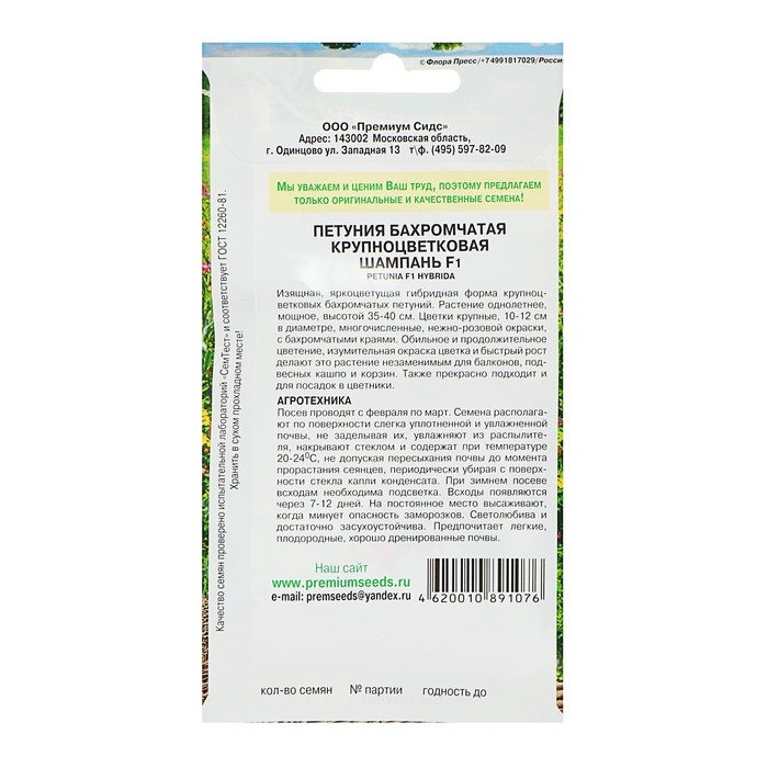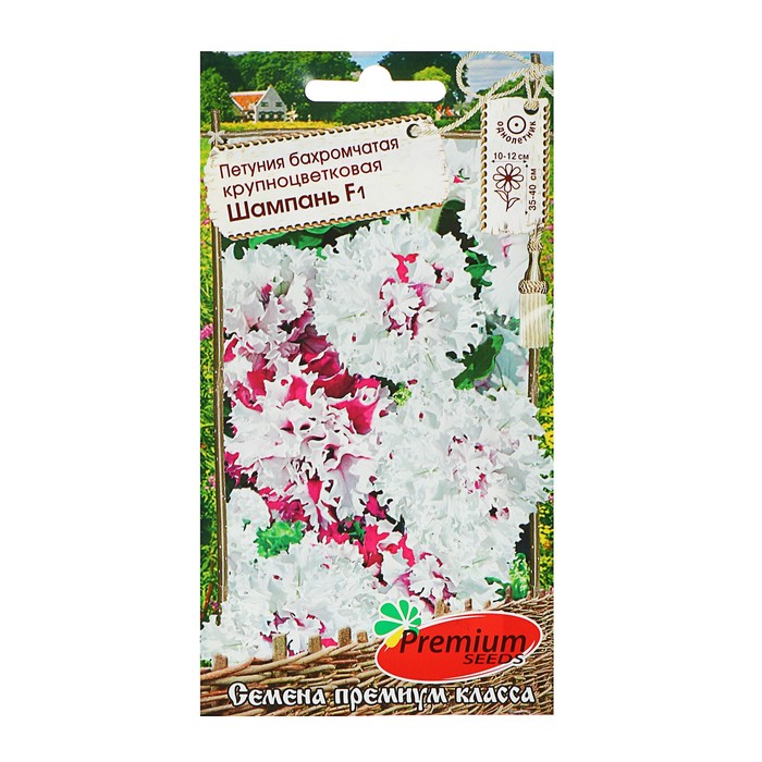 Производитель: Premium seeds; Габариты: 15 x 8 x 0,3; Страна: Россия; В боксе: 200 шт; Состав: См. на упаковке; Материалы: см. на упаковке; Фасовка: по 10 шт; Индивидуальная упаковка: Без упаковки; Сертификат: Не подлежит сертификации; Цвет: МИКС; Высота, см: 35 - 40; Агрономический срок годности, лет: 3; Вегетация: Однолетники; Вид: Петуния; Цветение период: Июнь, Август, Июль, Сентябрь; Упаковка: Цветная; Особенности выращивания: Открытый грунт; Сорт: F1; Сухоцвет: Да; Махровые: Да; По форме куста: Кустовая; Назначение: Для балкона, веранды, Для создания цветников, клумбы; Отношение к свету: Светолюбивые; Разновидность: Цветущее; Нуждаются ли в стратификации: Нет