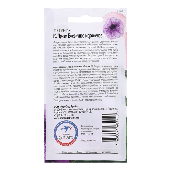 Производитель: Агросидстрейд; Габариты: 15 x 8 x 0,5; Страна: Великобритания; В боксе: 300 шт; Состав: Семена; Материалы: семена; Фасовка: по 1 шт; Сертификат: Не подлежит сертификации; Цвет: Сиреневый; Агрономический срок годности, лет: 5; Вегетация: Однолетники; Вид: Петуния; Особенности выращивания: Открытый грунт; Сухоцвет: Нет; Махровые: Нет; По форме куста: Кустовая; Назначение: Для создания цветников, клумбы, Для балкона, веранды; Отношение к свету: Светолюбивые; Разновидность: Цветущее