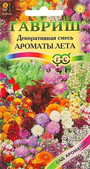 Оригинальная однолетняя цветочная композиция наполнит сад новым цветочным ароматом, который отразится на вашем эмоциональном состоянии. Роскошный запах душистого горошка перекликается с умиротворяющими тонами маттиолы, резеды и других растений, бодрящими нотками бархатцев и календул, сопровождается восточными оттенками базилика и фенхеля. Сорта цветов обильно и дружно цветут до осенних холодов. Растения светолюбивые, предпочитают плодородные, дренированные, умеренно влажные почвы. На рассаду высевается в апреле, высаживается в открытый грунт после всех заморозков. В открытый грунт семена высевают в апреле-начале мая. Цветущие растения очень душисты, декоративны и эффектны в течение всего сезона.