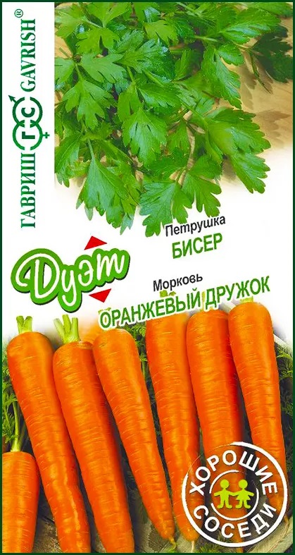 Семена Дуэт "Хорошие соседи "Морковь Оранжевый дружок +петрушка Бисер.