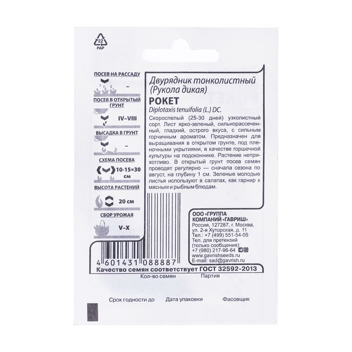 Заботливо выращенная на своём участке, дикая руккола «Рокет» подчеркнёт вашу заботу о здоровье и любви к природе. Живите ярко и свежо с собственной рукколой!