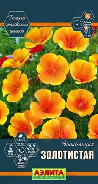 Семена Эшшольция Золотистая. Порция хорошего настроения с оранжевыми цветами! В настоящее время модно создавать цветники, где присутствуют эффектные цветы одной окраски, например, ярко-оранжевые. Они наполняют клумбы праздничной атмосферой и создают контрастные композиции с другими растениями. Считается, если вам нравится оранжевый цвет, вас обязательно ждет успех! Очаровательный летник с апельсиновыми цветками. Эшшольция выглядит хрупкой, нежной и капризной, но по праву считается культурой для ленивых. Она устойчива к засухе, болезням и вредителям. Не утрачивает пышного цветения даже на бедных почвах. Растения высотой до 40 см, с зеленовато сизыми ажурными листьями. Цветки изящные, яркие и крупные, диаметром 3-5 см. Закрывают лепестки в непогоду. Сорт используется для украшения разнообразных цветников, альпинариев и мавританского газона.