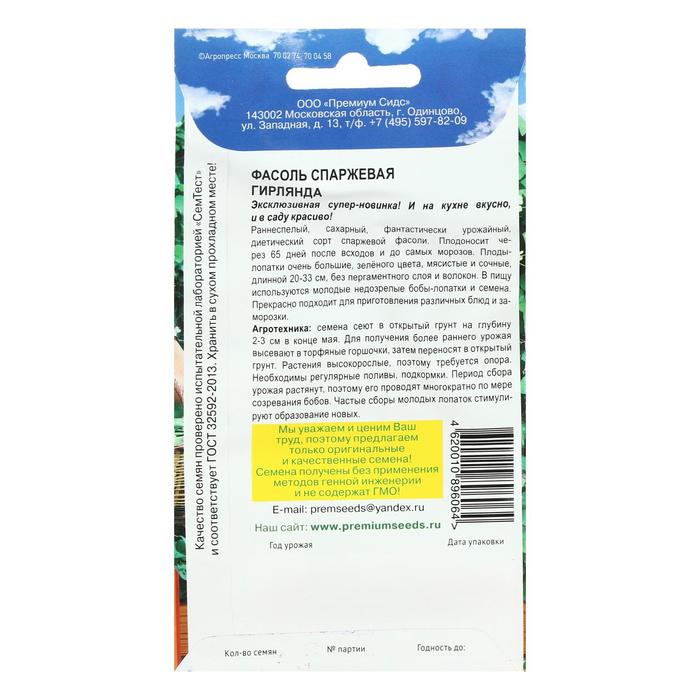 Производитель: Premium seeds; Габариты: 15 x 8 x 0,1; Страна: Россия; В боксе: 300 шт; Состав: Семена; Материалы: семена; Фасовка: по 10 шт; Индивидуальная упаковка: Без упаковки; Сертификат: Не подлежит сертификации; Агрономический срок годности, лет: 5; Сроки созревания: Средний; Особенности выращивания: Открытый грунт; Сорт: Гирлянда