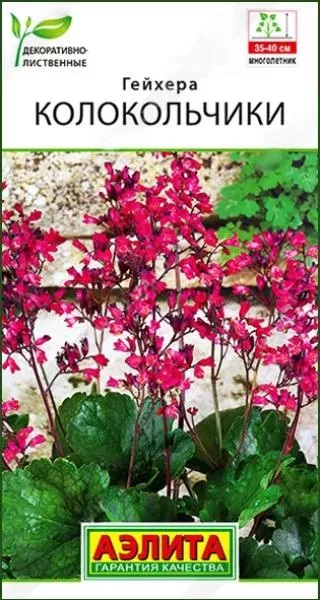 Семена Гейхера Колокольчики. Гейхера – многолетнее, травянистое растение, легко размножается семенами. Введено в культуру еще в 17 веке, но благодаря видовому разнообразию и современной селекции настоящее признание ведущих мировых цветоводов завоевало лишь в последние десятилетия. Красивые, не большие, декоративные листья собраны в плотную прикорневую розетку. Изящные соцветия из мелких цветков венчают длинные крепкие цветоносы (высота до 40 см). Сорт используется для создания бордюров, оформления приствольных кругов деревьев, водоема, альпийской горки, сада камней, для окантовки клумб.